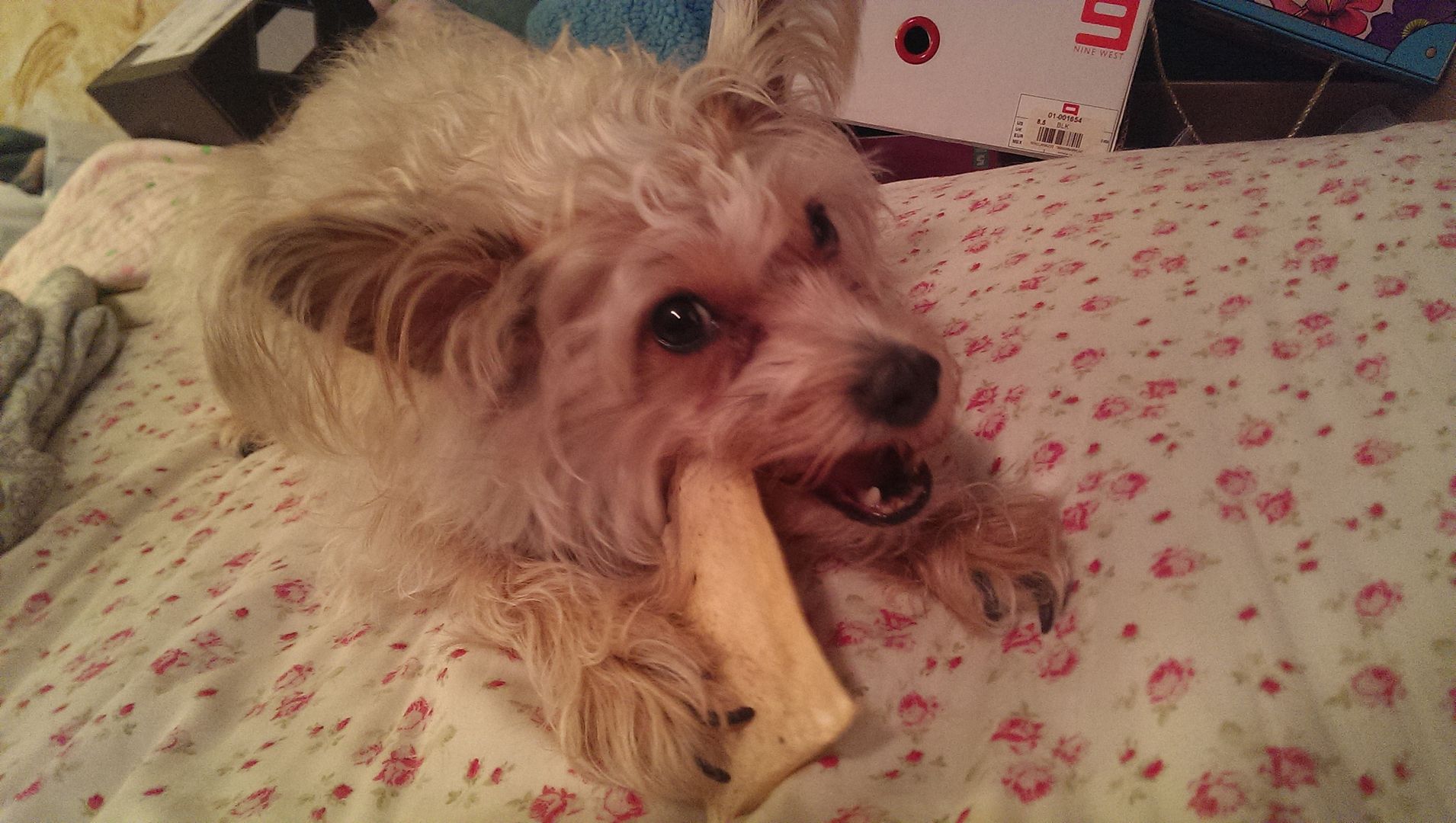He has eye goobers and needs his nails clipped. School makes me a terribly dog mother.