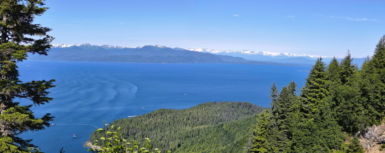 After lunch we immediately went back out to Mandrogy-lite. We took the transport Gondola to Ocean landing, and proceeded to walk along the boardwalk. I’ve seen this area on several youtube videos but it was never sunny there - but today it was sunny in the mid 70s, practically a heat wave. So that made for a nice visit. We spent some time with the exhibits at the museum - some on Tlingkit culture, some on Salmon canning history. Because the weather was so beautiful, I was tempted to take the Gondola up the Hoonah mountain for a view, but that is expensive. I figured there’s a trail up on the mountain, so maybe it’d be worth it. We went up and the view was gorgeous - LPCR and co. were impressed. However, there was a giant warning sign explaining how we must travel in groups of 10 or more because of bears in the area, which worried La Prof. We ran into a ranger there, who explained that the sign is just there for CYA, and that groups of 3 or 2 routinely take the trail (which takes 40 minutes), and that there’s another ranger (a Bear ranger?) is up there and may be happy to escort us (the mountain top was practically empty at that point). We deliberated and decided it wasn’t worth it, not just because of the bear threat, but because the pictures of the trail didn’t look all that pretty. The hidden lake looked just like a pond behind La Prof.’s childhood home. So we took some pictures and soon came back down. So, I’m not sure it’s worth the price to go up there, but at least the proceeds go to the Tlingkit tribe maintaining the place, so I feel good about that.