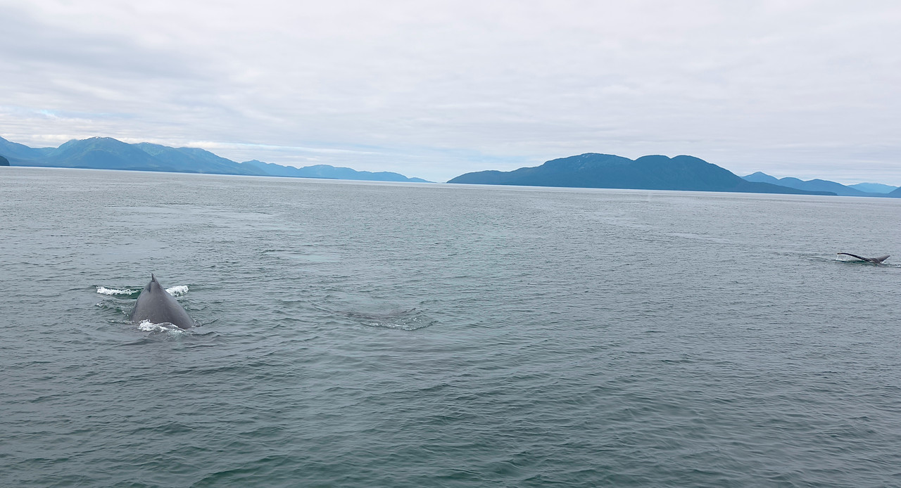 The tour started right where the ship docked - we didn’t even have to walk up the gangway. The sight-seeing boat docked next to the cruise ship. It took about 40 minutes to sail to Point Adolphus, which is a known area where humpback whales feed, and sure enough, as soon as we arrived, a group surfaced near the boat and swam towards us before diving in front of the boat. It wasn’t as close as the time in Antarctica where a whale surfaced right next to the ship, but we were closer to the water and the sun was brighter, so we could clearly see the markings on the whale’s back. Still pretty awesome. We stayed there for an hour or so and watched more whales feeding, some eagles and sea otters. The captain would steer the ship slowly towards the wildlife (but keeping her 50 yards distance) so we’d get a good view. The whales didn’t seem to mind.