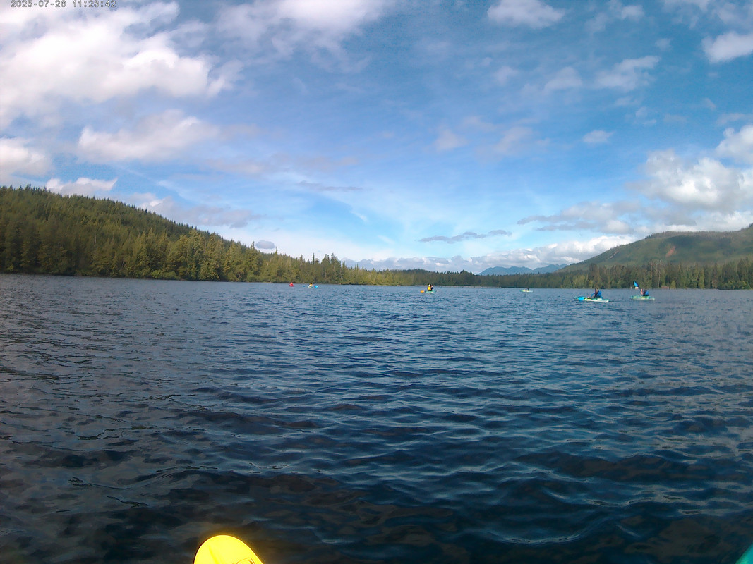 We then hopped into Kayaks and went onto Klawock lake. It was a beautiful day; by then the sky had cleared and you can see the reflection of the surrounding mountains. We did see the hatchery containing frys from last year - you can see some of them hop up above water - but mostly we were there for the view. It was a small excursion, with only 9 people, so we each get our own individual kayak. It’s only now I realized my shoulder injury hadn’t healed completely - my left stroke is noticeably stronger than my right, so even when I think I’m paddling