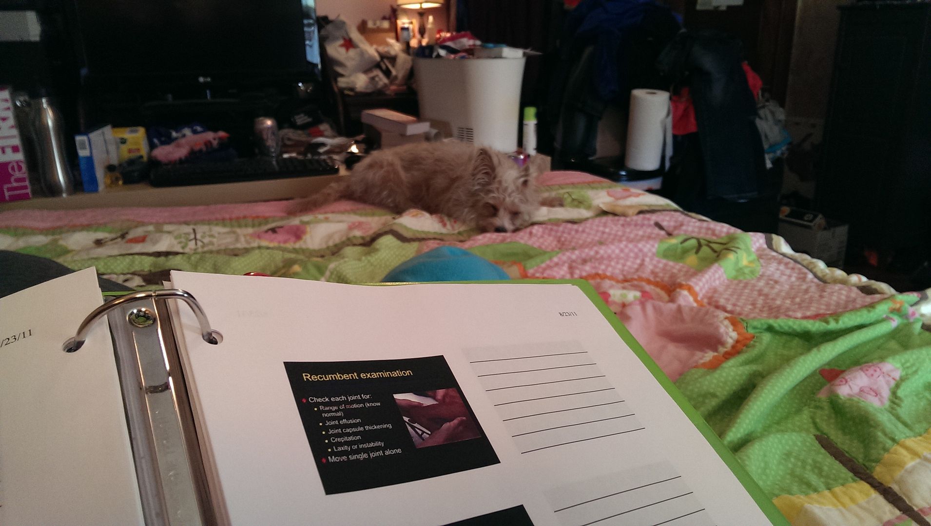 I've been chipping away at the Musculoskeletal lectures all day today. I've gotten through nine of twelve, so yay progress. And I got all my Small Animal Gastroenterology lectures ready to study (aside from those we haven't had yet, that is. Having lectures the day before the exam is not a kind thing to do). I'm done at 2 tomorrow but Aaron won't be able to pick me up until 5ish so we'll see if I can make myself study them.