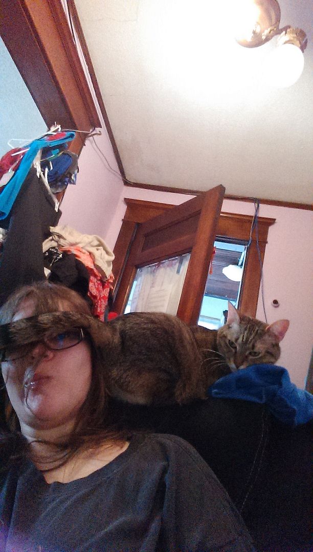 She likes to perch on my chest in a really awkward way so that I have to hold her up. Jerk :P
