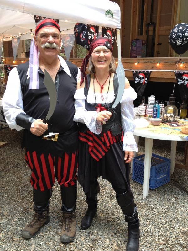 Last night I went to the outdoor community party, the theme was pirates. I didn't have any pirate outfits but I was thankful that the host and hostess had bought a bunch of pirate stuff. hats, bandanas, fake mustaches etc. The host made these fabulous ribs that were to die for-and oh my god the crab legs were scrumptious! Many other people brought side dishes and desserts-- The alcohol was flowing, I only had 2 glasses of wine. My husband brought his own flask to share with the guy neighbors.